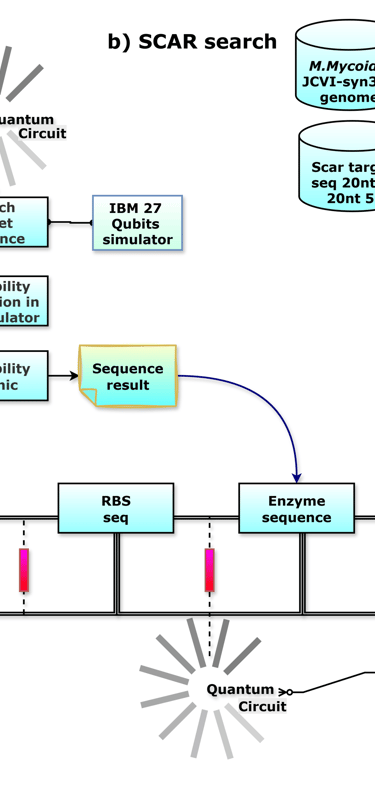 Genetic engineering through quantum circuits: construction of codes and analysis of genetic elements biobloqu